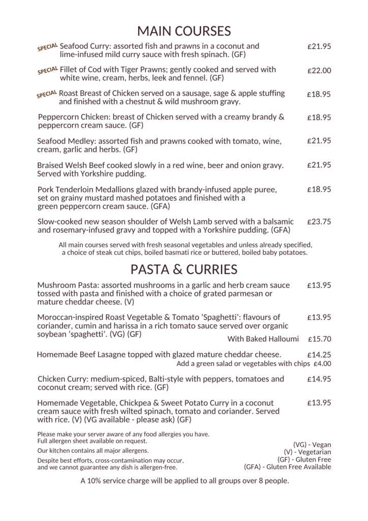 *PLEASE NOTE* if you have any special dietary requirements (such as garlic or onion intolerance); please contact the restaurant ahead of your visit as we may not be able to fulfil requests on the day without prior arrangement.