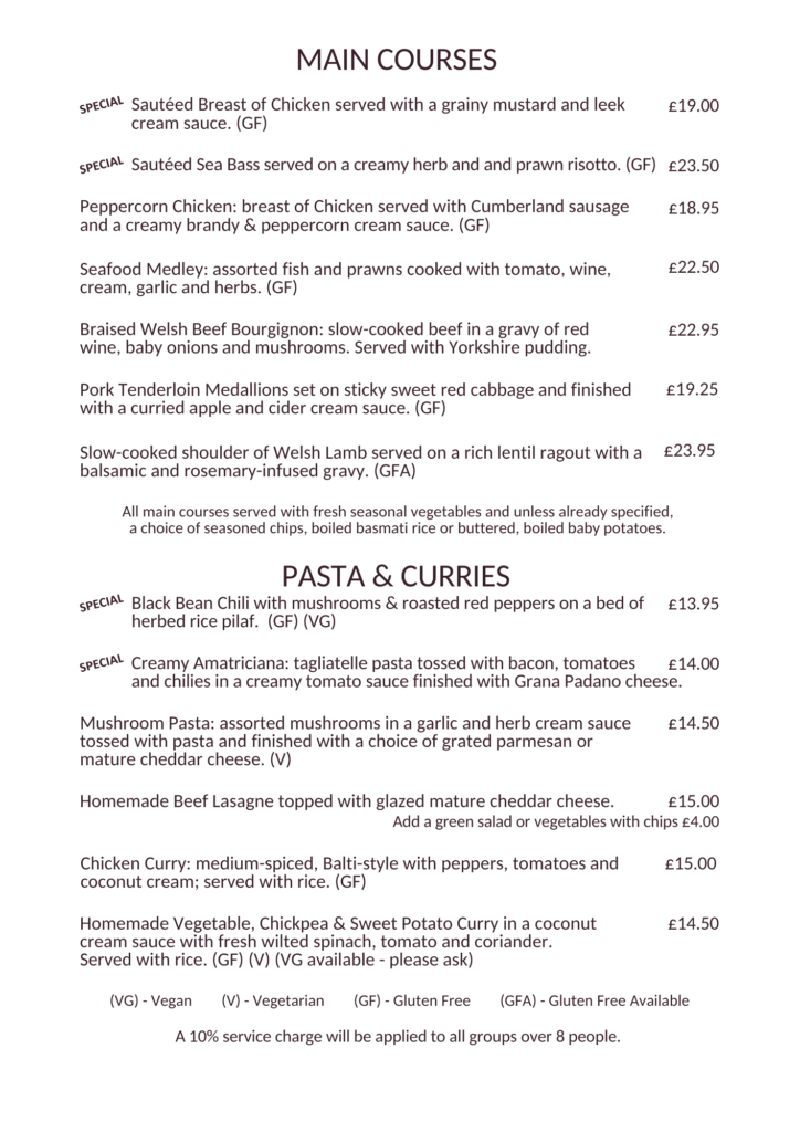 *PLEASE NOTE* if you have any special dietary requirements (such as garlic or onion intolerance); please contact the restaurant ahead of your visit as we may not be able to fulfil requests on the day without prior arrangement.